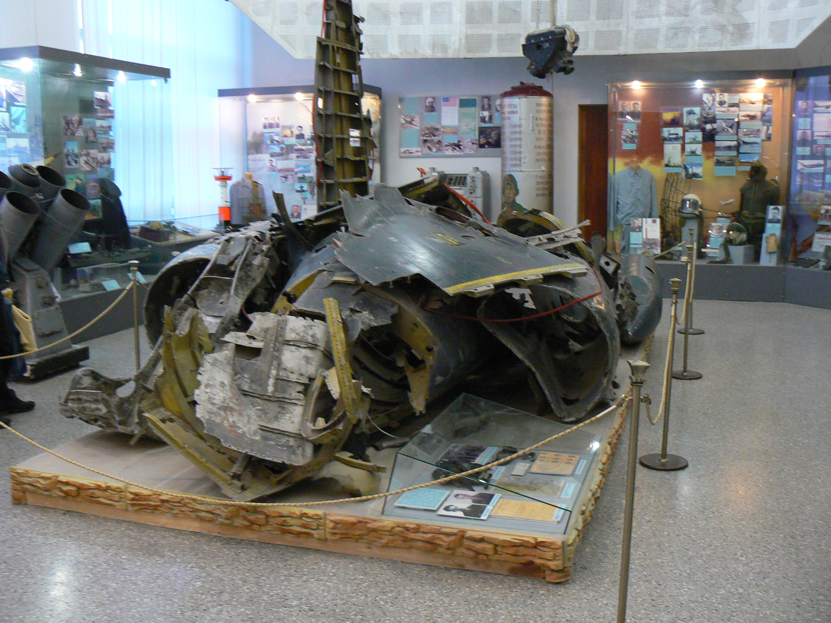 At the museum, tickets were 100 rubles each, and I paid an extra 100 rubles to take photos. The ticket agents knew we were not Russian and seem to give us a lot of attention. They were asking lots of high-speed questions in Russian for some reason. We were able to tell them that we wanted to take photos. A couple of babushkas (older Russian women) were talking non-stop and apparently wanted us to check our backpacks which we did. We found the restrooms and again men and women were separated. Back upstairs we were looking around and talking about where to start our tour when a young Russian in his twenties starts talking to us in perfect English. He works for the Museum and starts talking about some of the exhibits. Then for the next hour he gives us a guided tour through the entire museum explaining many of the exhibits in detail. He speaks of a great female sniper at Stalingrad and of a famous Russian officer who loses both arms in battle, and returns to the eastern front as soon as he is recovered. He talks of the wars largest tank battle at Kursk in Russia, a turning point on the Eastern front in 1943. There is an American jeep on display as we supplied the Russians with equipment during the war. He shows us one of the first Kalashnikov’s, i.e. AK-47. We also see the wreckage of Francis Gary Powers U2 which was shot down near Yekaterinburg in 1960.